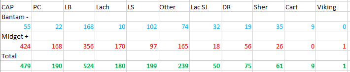 Midget, Bantam, Bantam M/W, Atom W |